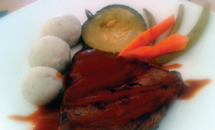 hervir y retirar. Vaciar un poco de la salsa sobre la carne y acompañar el fi lete con las verduras