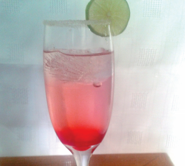 granadina y rellenar el vaso con agua mineral. Decorar con una rodaja